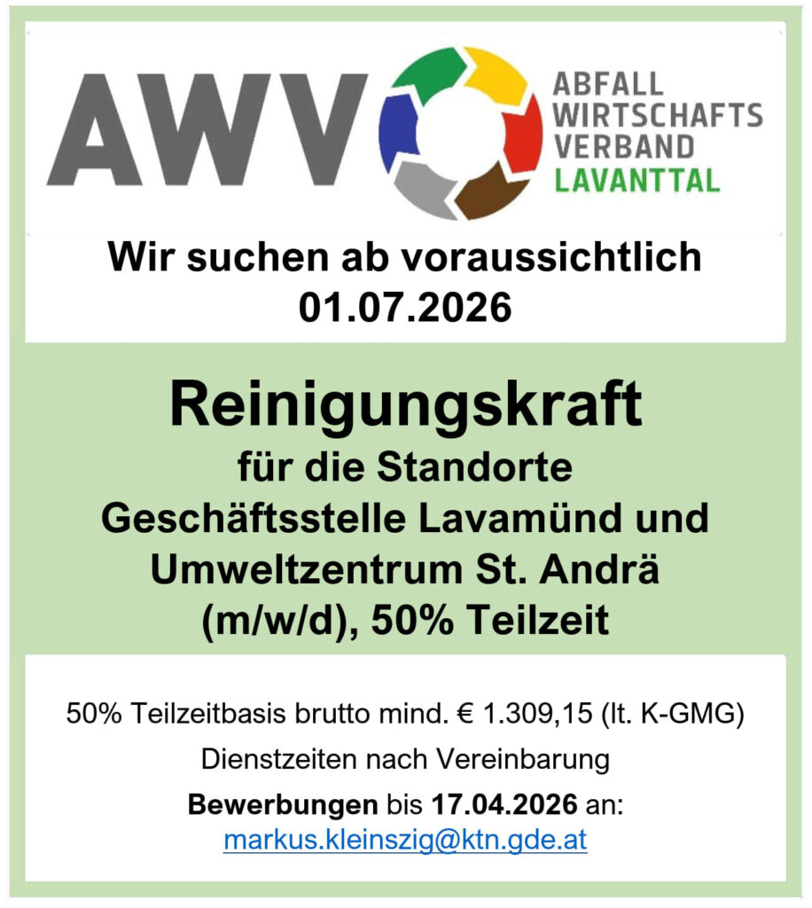 Der Abfallwirtschaftsverband Lavanttal mit seinen zwei Standorten am Umweltzentrum Lavanttal (St. Andrä) und an der Deponie Hart stellt Ihnen seine Dienstleistungen im Bereich der Abfallentsorgung gerne zur Verfügung.